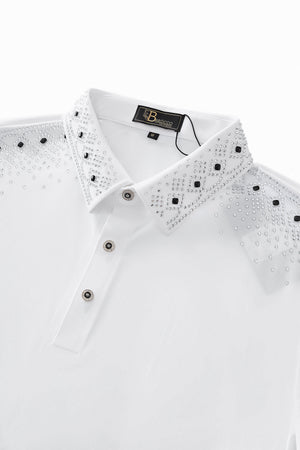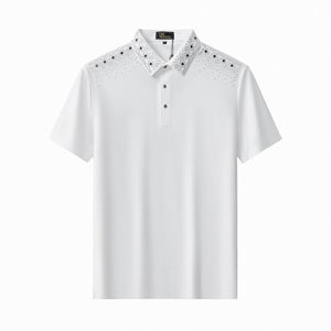 A refined polo designed with an elevated, fashion-forward sensibility, featuring a seamless, stitchless construction accented by subtle decorative trim that delivers a clean, modern finish with understated luxury appeal.