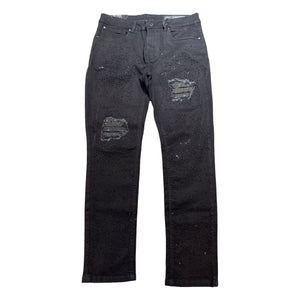 M. Society Men's Black Ripped & Rhinestone Jeans