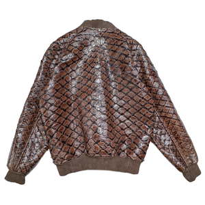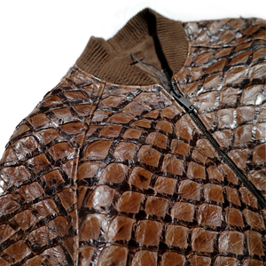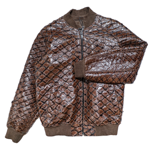 Marco Di Milano Brown Genuine Pirarucu Fish Bomber Jacket