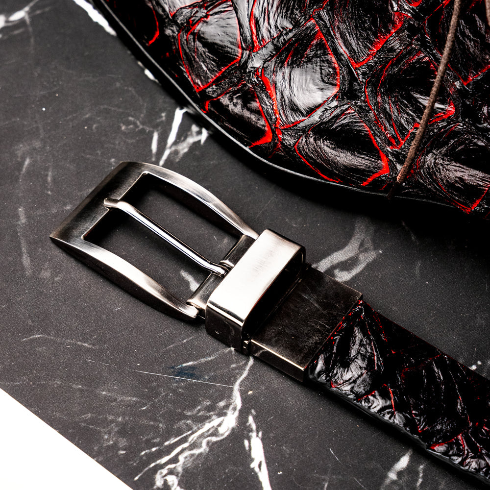 The Marco Di Milano Olivieri Pirarucu Blackcherry Belt combines exceptional craftsmanship with distinctive style. Crafted from premium pirarucu leather, known for its durability and unique texture, this belt offers both longevity and a refined look. Its rich blackcherry color adds a sophisticated touch to any outfit, making it versatile for both casual and formal occasions. Designed for comfort and a perfect fit, it supports your daily wear with confidence and elegance. Elevate your wardrobe with this timeless accessory that blends durability, style, and comfort seamlessly.
