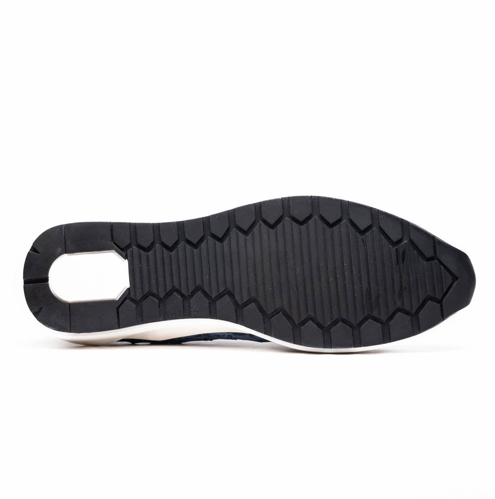 Elevated streetwear meets exotic craftsmanship in the Varenna sneaker by Marco Di Milano. Handcrafted from genuine full-quill ostrich leather in a rich blue jeans finish, this luxury low-top silhouette blends everyday comfort with standout texture. Designed for the fashion-forward individual who values detail and distinction.