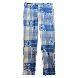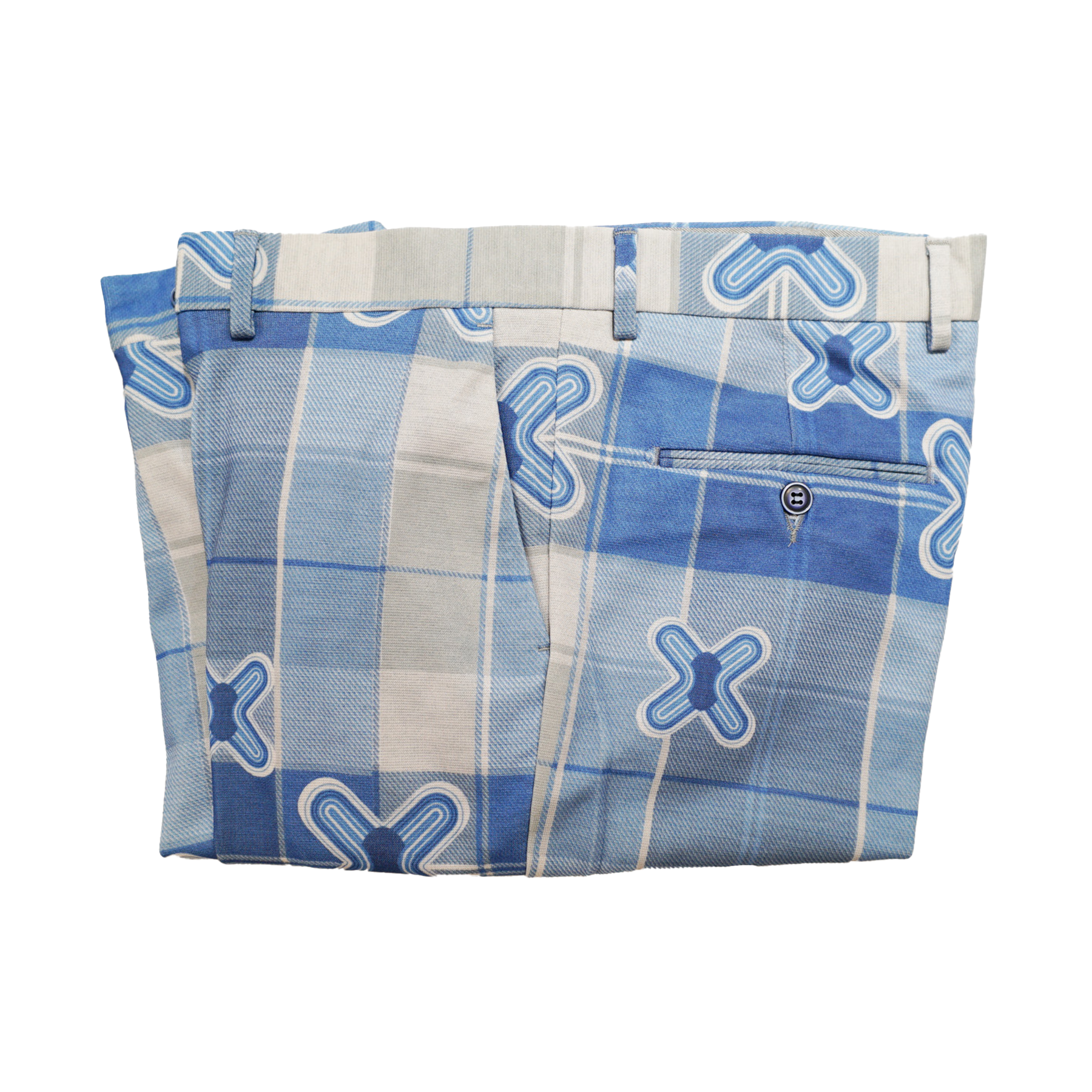 Add bold energy to your rotation with these blue plaid dress pants, designed with oversized check patterns and standout printed motifs. With a clean tailored structure and lightweight feel, these pants bring personality without sacrificing polish.