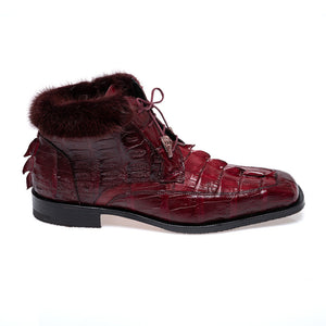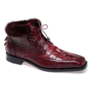Discover the pinnacle of luxury footwear with the Mauri 1027 boots in a captivating ruby red finish. This exceptional design showcases a remarkable tri-texture composition featuring genuine hornback, supple baby crocodile, and plush mink, creating a multi-dimensional aesthetic that commands attention. The harmonious blend of these premium materials demonstrates Mauri's mastery of exotic leather craftsmanship, while the rich ruby red hue adds warmth and sophistication to any ensemble. These boots represent the ultimate expression of refined taste, combining tactile luxury with visual distinction. Engineered with meticulous attention to detail and constructed using time-honored Italian techniques, the Mauri 1027 delivers uncompromising comfort alongside undeniable style. Perfect for the discerning collector who values exclusivity and superior quality, these boots transcend ordinary footwear to become a treasured investment piece.