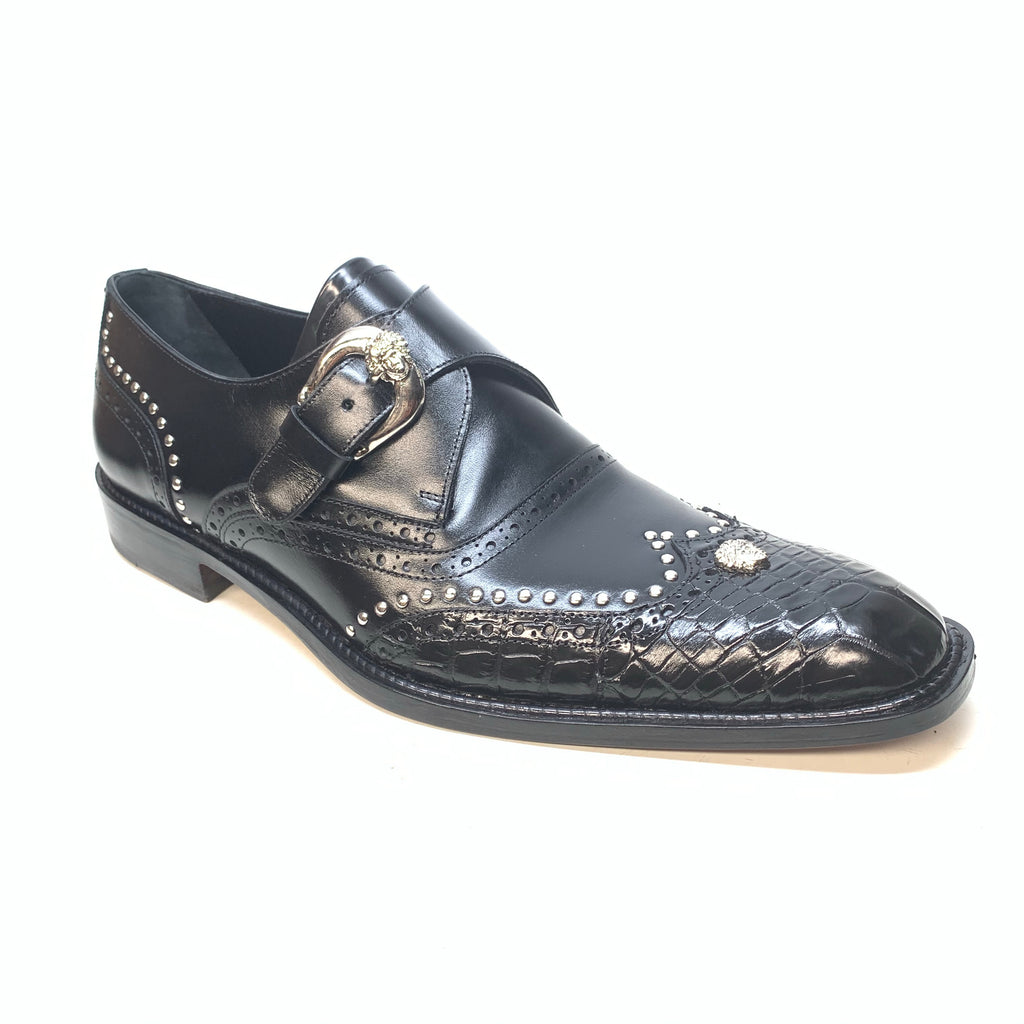 Mauri 3051 Black Alligator Studded Monk Strap Dress Shoes