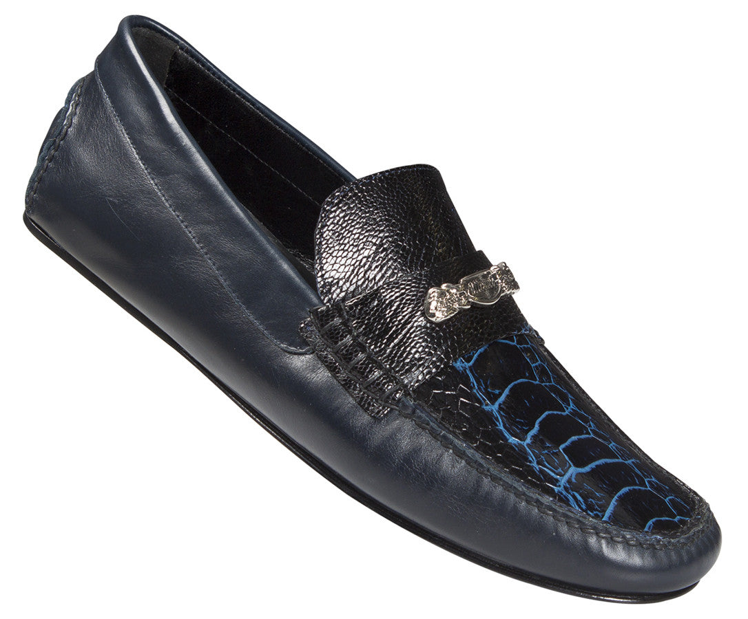 Mauri - "3117/1" Blue Ostrich Leg/Nappa Calf Loafer