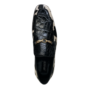 Mauri 4294/5 Alligator & Pony Hair Bit Loafers - Black