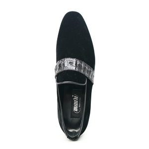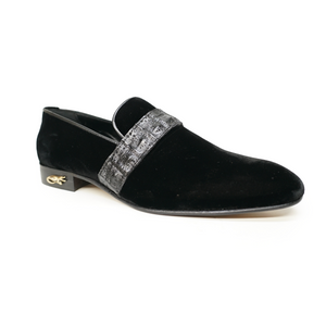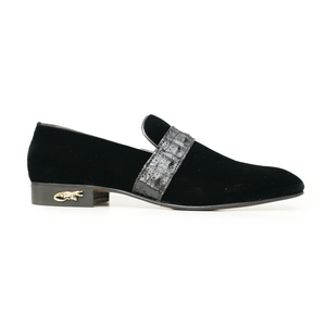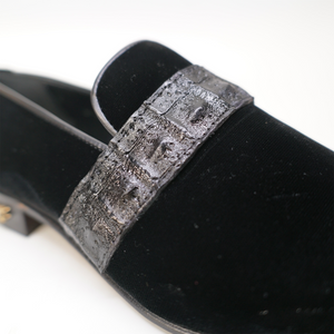 Mauri 4709 Black Velvet / Caiman Crocodile Loafers