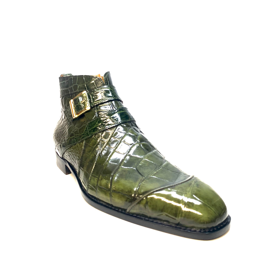Mauri "4828/2" Olive Green Alligator Monk Strap Zipper Boots - Dudes Boutique