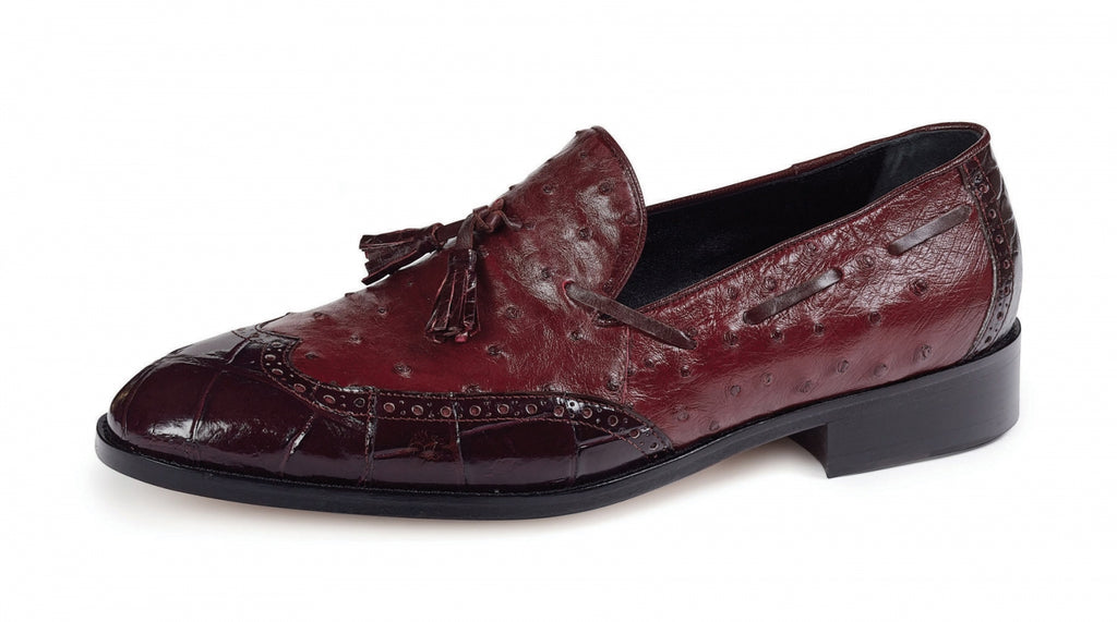 Mauri - 53129 Burgundy Alligator Body/Ostrich Tassle Loafer