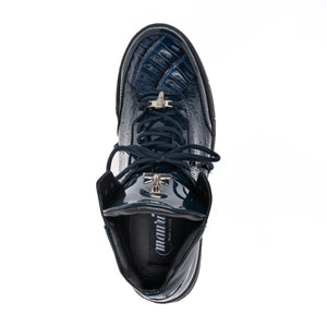 Mauri 8429 Wonder Blue Patent Leather Crocodile Toe Mid Top Sneakers