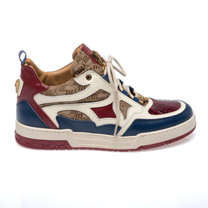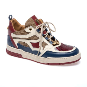 Mauri 8435 Nappa / Baby Crocodile / Double M Fabric Sneakers Blue / Ruby Red / Beige