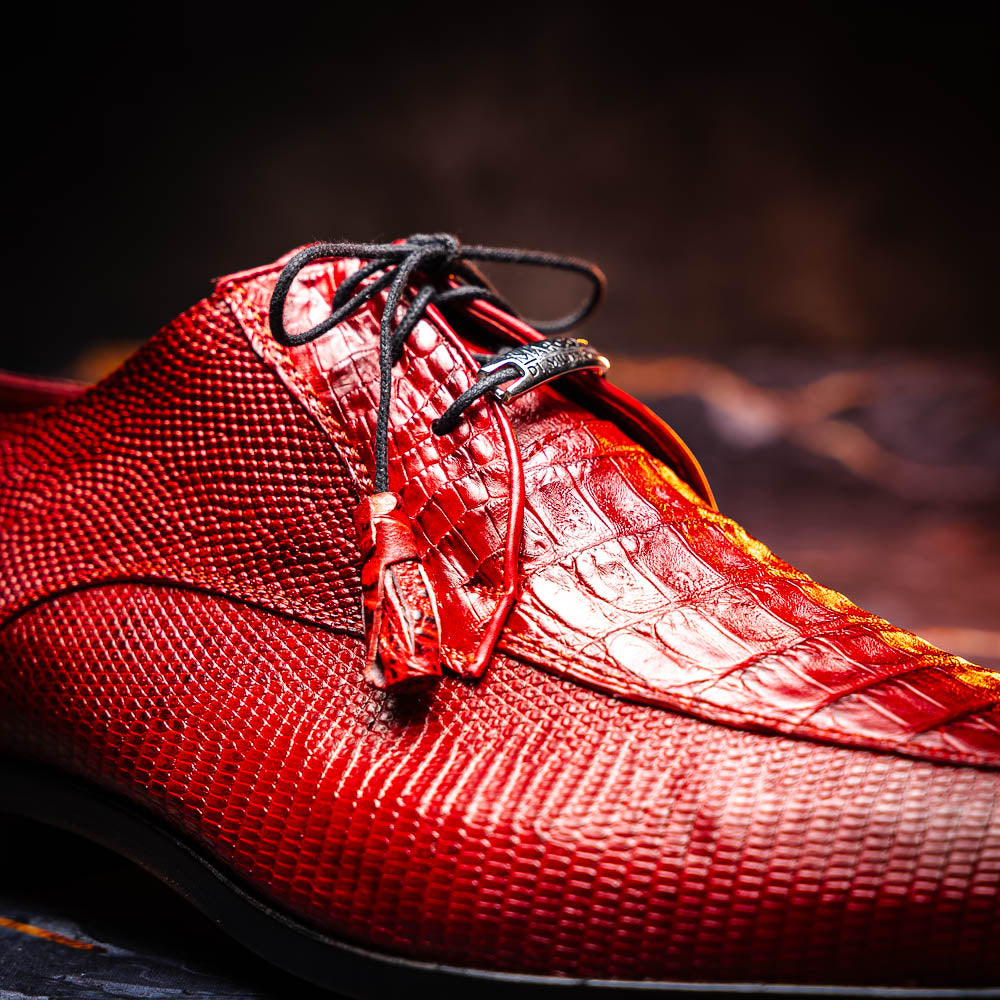 The MERIDA is our caiman and lizard dress derby's featuring tasseled laces and a polished hand finish that makes the texture pop. Pair these with your favorite dress-wear for a stunning look.