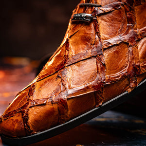 The Olivieri collection is our daring interpretation of the classic dress oxford, masterfully handcrafted using genuine pirarucu skin—a rare Amazonian fish prized for its bold texture and dramatic scale patterns. This collection elevates formal footwear with exotic flair and contemporary detail, making it a staple for discerning gentlemen who appreciate distinctive luxury.