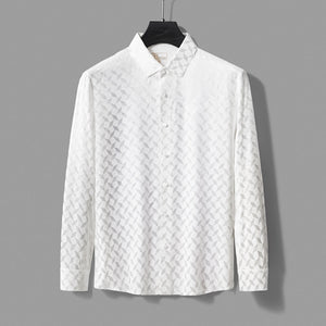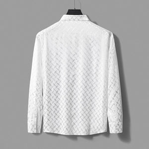 visual impact with precision tailoring. Crafted in multiple rich colorways and finished with a stitchless construction, it delivers seamless fluidity and contemporary edge. Ideal for elevated evenings or bold everyday statements. Details: Long sleeve, button-down style Intricate cube-inspired tessellation pattern Stitchless construction for a clean, uninterrupted silhouette Structured collar and tonal buttons Slim fit with curved hem Available in multiple color options Fabric & Care: 100% Rayon Machine wash cold Do not bleach Tumble dry low or hang to dry Iron on low if needed