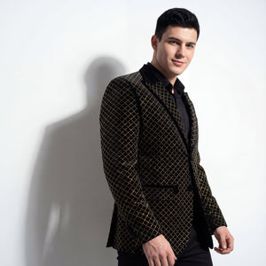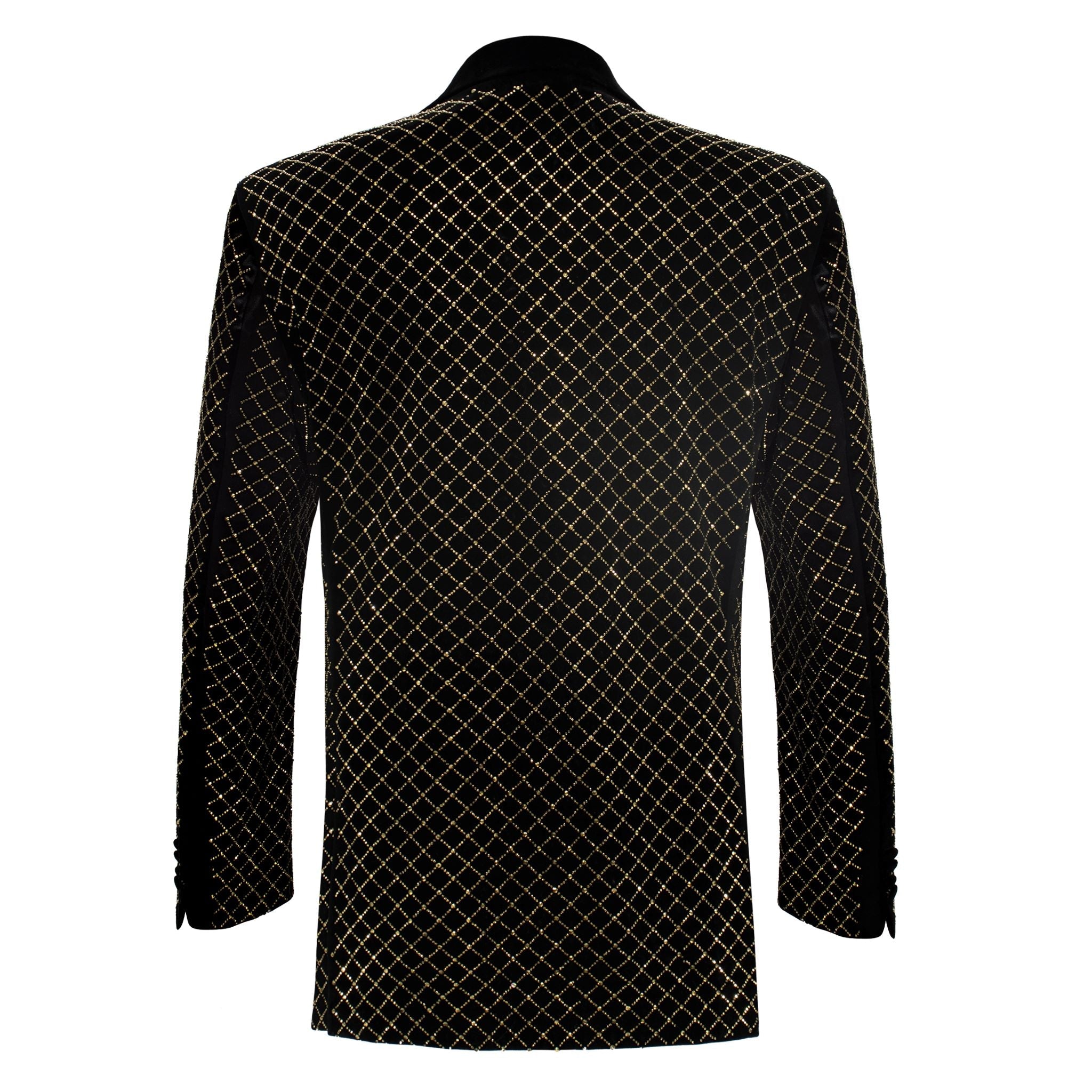 Command attention with the SB422 Black Embellished Blazer, crafted for those who thrive on bold statements and luxurious style. The sleek black fabric is elevated with intricate crystal detailing, adding a dazzling bling factor that's perfect for the red carpet, runway, or any high-profile event. The peak lapel and single-button closure create a sharp silhouette, while the stretch fabric ensures maximum comfort, allowing you to move with ease and confidence. Designed for singers, artists, and anyone ready to own the spotlight, this blazer blends sophistication with eye-catching flair, making it a must-have for any fashion-forward wardrobe.