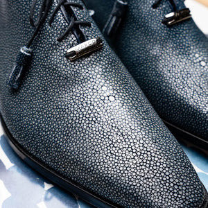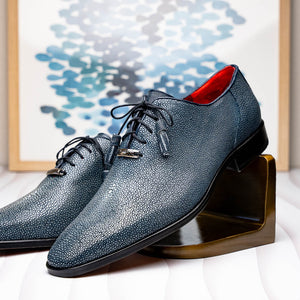 The PANNUCI is our exotic take on a classic dress oxford, featuring tasseled laces, fully wrapped genuine stingray, and leather outsoles. Dress these up with your favorite jeans or slacks for a stand out look.