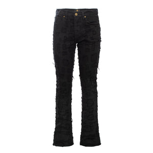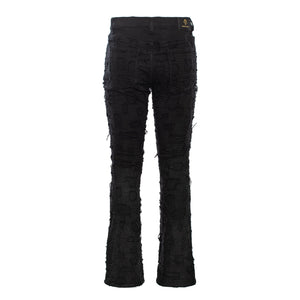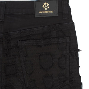 Patchwork Distressed Heritage Fit Denim Jeans -Century Penthouse BLACK