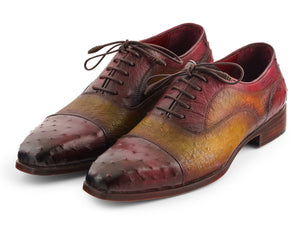 Paul Parkman Men's Genuine Ostrich Captoe Oxfords Green & Burgundy