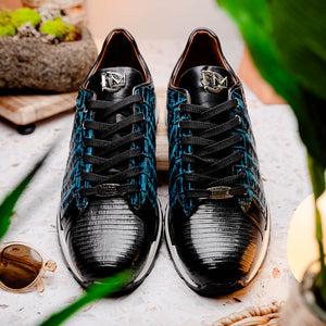 The PORTICI is our aggressive combination genuine crocodile and lizard fashion sneaker boasting a sporty casual silhouette with a two tone hand painted finish. Dress these up with your favorite jeans, slacks, or shorts for a striking look.