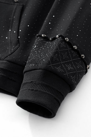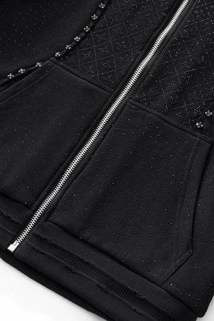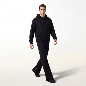 This Barocco signature set delivers elevated streetwear with a refined, dimensional edge. The hoodie and joggers feature a sculpted grid texture accented with meticulously placed stones, creating a subtle shimmer and structured contour effect. Crafted from premium cotton for comfort and breathability, this set blends luxury detailing with everyday wearability.