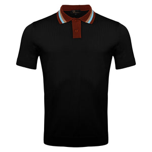 Upgrade your wardrobe with the Regent Luxe Knit Polo, a perfect fusion of timeless elegance and modern sophistication. Crafted with a premium knit fabric, this polo offers a sleek fit, ensuring all-day comfort and breathability. The contrast ribbed collar with bold stripe detailing adds a refined yet dynamic touch, making it a versatile piece for both casual and smart-casual occasions.