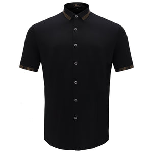Embrace bold confidence with the "Risky Business" short sleeve button-up shirt, engineered for the modern man who demands style without compromising comfort. Featuring innovative stitchless technology, this shirt provides a clean, refined look while ensuring a flexible fit with its 4-way stretch design. The breathable fabric keeps you cool under pressure, while the gold detailing on the sleeves and collar adds an edge of luxury and sophistication. Perfect for any occasion where you need to command attention, the "Risky Business" shirt combines stretch and extra comfort for an effortless, masculine appeal.