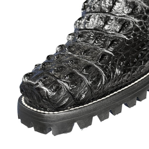 Crafted from authentic Nile crocodile hornback leather, these statement biker boots deliver uncompromising style and durability. The distinctive textured surface showcases the natural beauty of premium crocodile skin, while the classic harness design adds an edge of rebellion to any ensemble. Built for those who refuse to compromise on quality, these boots feature robust construction and a commanding silhouette that commands attention. Whether you're navigating city streets or making a bold fashion statement, these safari-inspired boots elevate your wardrobe with timeless sophistication and undeniable presence.