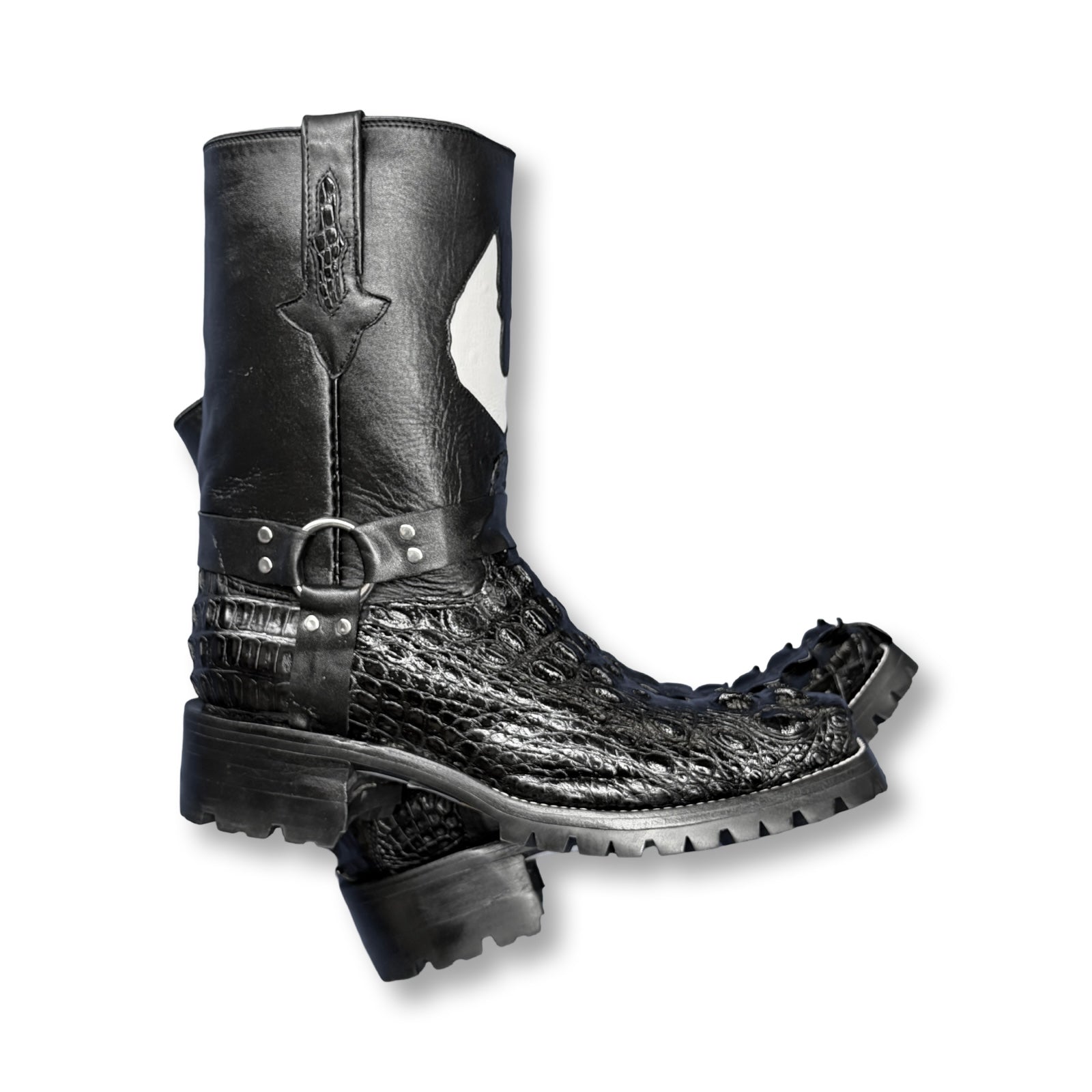 Safari Nile Crocodile Hornback Head Harness Biker Boots