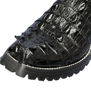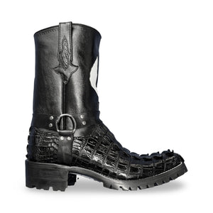 Elevate your edge with these striking Safari Nile Crocodile Tail Harness Biker Boots, where untamed style meets refined craftsmanship. Featuring authentic crocodile tail detailing and a bold harness design, these boots command attention with their distinctive aesthetic. The rugged biker silhouette pairs perfectly with the luxurious texture of genuine crocodile, creating a statement piece that bridges rebellious attitude with sophisticated taste. Built for those who refuse to blend in, these boots deliver both visual impact and the durability expected from premium footwear. Whether you're channeling adventurous spirit or making a fashion declaration, these boots ensure you stand apart from the crowd.