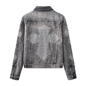 The Sanctum Cross Denim Jkt merges refined craftsmanship with bold iconography. Featuring a dimensional cross motif on the back and bead embellishments across the sleeves, it redefines the denim jacket with artful intensity. A structured fit and subtle texture deliver an elevated, statement look true to Century Penthouse style.
