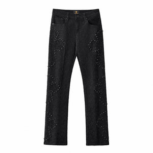 The Sanctum Cross Denim Pant channels confident sophistication with its subtle texture and bead-accented detailing. Designed to coordinate with the jacket yet strong enough to stand alone, it fuses structure, comfort, and a refined edge that defines Century Penthouse design.