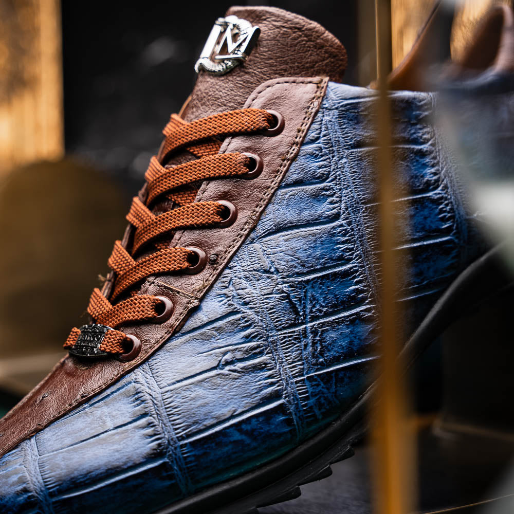 The SAULO is our aggressive combination genuine alligator and ostrich quill fashion sneaker boasting a sport casual silhouette with two tone hand painted finishes. Dress these up with your favorite jeans, slacks, or shorts for a striking look.