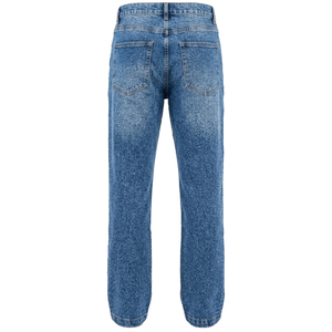 Classic mid-blue denim jeans featuring a convenient snap hem design for easy adjustments. Crafted from quality denim fabric, these jeans offer a comfortable fit perfect for everyday wear. The snap hem allows you to customize the length to suit your style, making them versatile for various occasions. A timeless wardrobe staple that combines practicality with casual appeal.