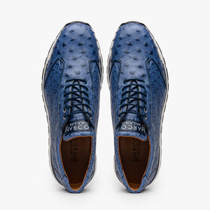 The SCANNO is our classic genuine ostrich quill fashion sneaker boasting a sporty uptempo silhouette and hand painted finish. Dress these up with your favorite slacks for a sporty dress look or pair them with jeans or shorts for a casual but clean look.