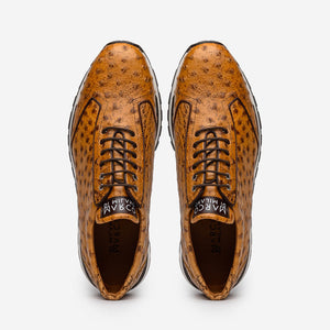 The SCANNO is our classic genuine ostrich quill fashion sneaker boasting a sporty uptempo silhouette and hand painted finish. Dress these up with your favorite slacks for a sporty dress look or pair them with jeans or shorts for a casual but clean look.