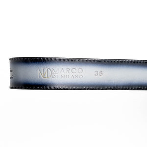 The TEXAS belt is a bold fusion of exotic luxury and branded identity. Handcrafted from genuine caiman crocodile skin and contrasted with premium full-grain calf leather, it delivers a striking interplay of textures. The calf leather front is hot-stamped with the Marco Di Milano insignia, adding depth, dimension, and unmistakable identity to the exterior design.