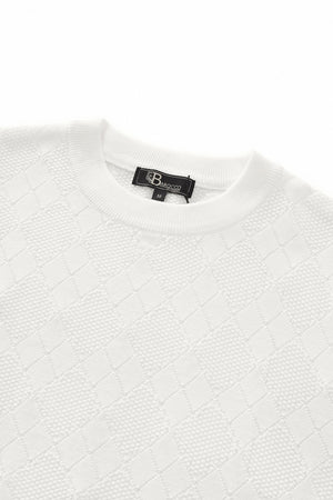 The Textura Diamond Knit LS reimagines classic knitwear with a modern, tactile finish. Defined by its tonal diamond-knit pattern, this piece offers both depth and understated sophistication. Crafted from a smooth viscose-blend fabric, it delivers the comfort of stretch with the structure of luxury tailoring β a core Barocco essential for refined styling.