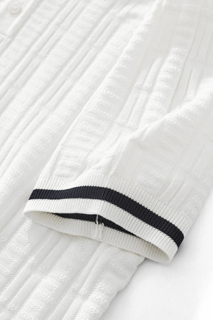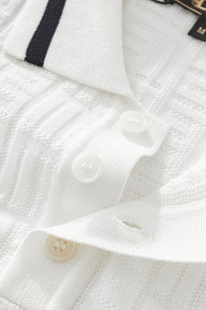 The Textura Polo redefines modern casualwear with elevated texture and timeless structure. Featuring a geometric knit pattern, contrast tipping on the collar and sleeves, and a classic button placket, this polo brings subtle sophistication to your everyday rotation. Lightweight yet rich in detail, it’s designed to be breathable, stylish, and effortlessly versatile. Whether you're dressing for casual Fridays, brunch outings, or weekend strolls, the Textura Polo adds dimension to your look while maintaining an air of polish.