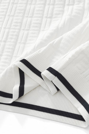 - Short sleeve knit polo with geometric textured pattern