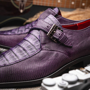 The TOLUCA is our genuine crocodile and lizard dress monk strap featuring chrome scale textured buckle, full leather outsoles, and a polished hand-finish. Dress these up with your favorite jeans or slacks for a stunning look.