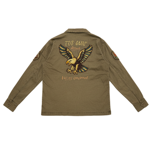 Embrace the bold legacy of aviation excellence with this Top Gun Green Military Eagle Shirt. This distinguished piece showcases a striking eagle emblem set against a refined military green backdrop, embodying the prestige and valor associated with elite fighter pilot culture. The design merges vintage military aesthetics with contemporary craftsmanship, delivering a garment that speaks to those with an appreciation for historical symbolism and refined style. The eagle motif serves as a powerful emblem of strength and precision, while the carefully selected color palette ensures versatility across various styling occasions. Ideal for discerning individuals who value authenticity and narrative depth in their wardrobe, this shirt transcends typical casual wear to become a meaningful expression of heritage and sophistication.