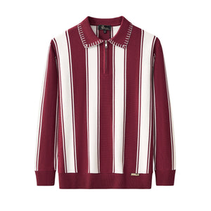 Vanguard Stripe Knit Polo LS WINE