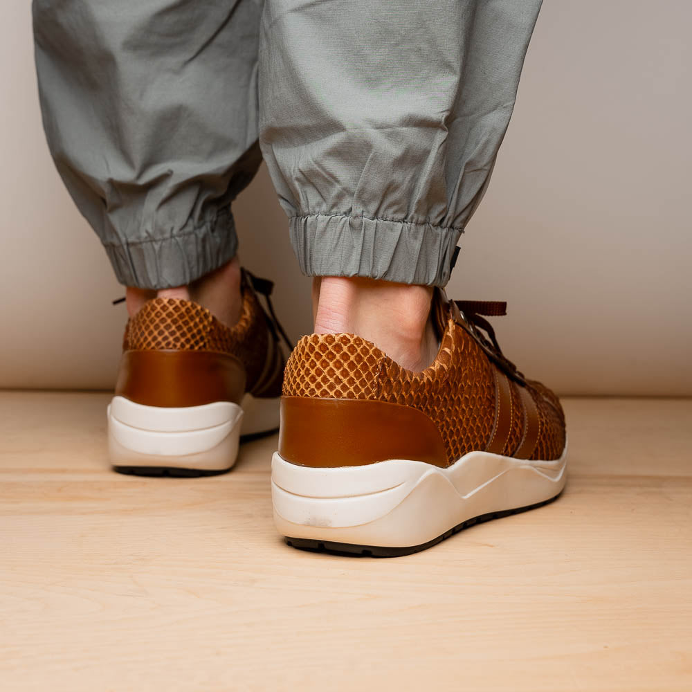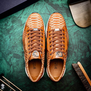 The VERONA is our street inspired sueded python and classic calfskin fashion sneaker rocking a minimal casual silhouette with a two tone hand painted finish. Dress these up with your favorite jeans, slacks, or shorts for a striking look.