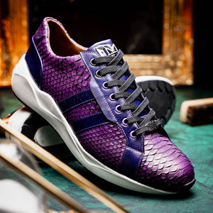 The VERONA is our street inspired sueded python and classic calfskin fashion sneaker rocking a minimal casual silhouette with a two tone hand painted finish. Dress these up with your favorite jeans, slacks, or shorts for a striking look.