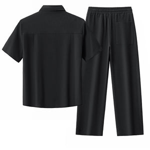 Vista Set β Waffle Textured Shirt & Pant BLACK